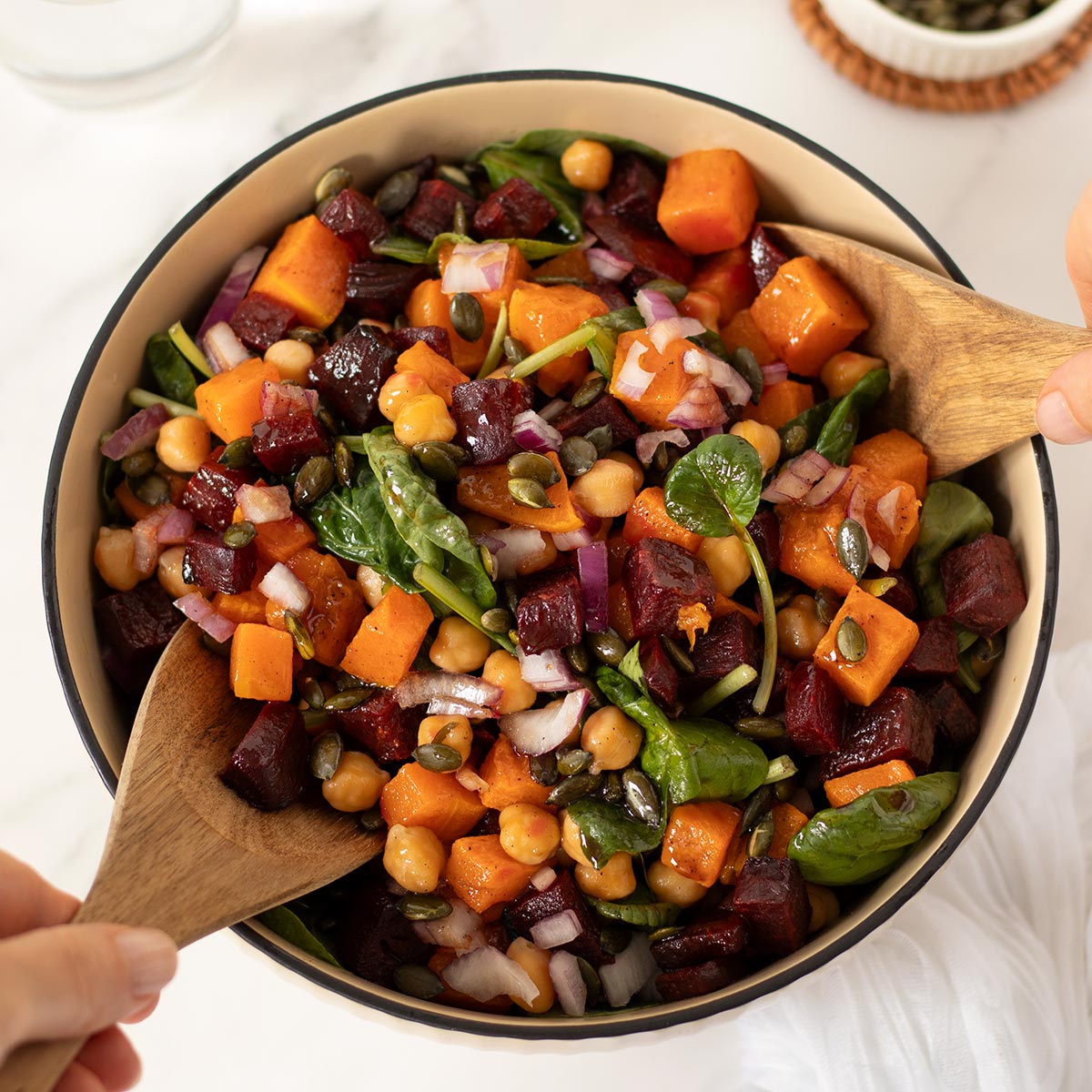Roasted Pumpkin Beetroot Salad with Spinach and Chickpeas